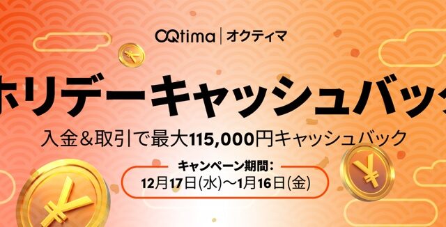 キャッシュバック OQtima(オクティマ)のホリデーキャッシュバックキャンーペン! 2026年1月2日 OQtima https://overseas-fx-introductory-book.com/wp-content/uploads/2025/08/cropped-cb9d51311a22451736fd0597fb944073.jpg 海外fxに関する初心者のための入門書