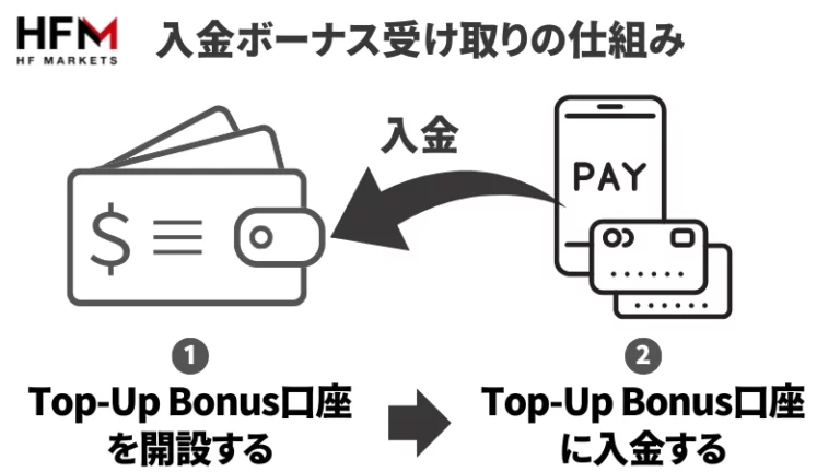 HFM(エイチエフエム)の入金ボーナスの詳細や受取り方、入金ボーナスの注意点を解説しました。