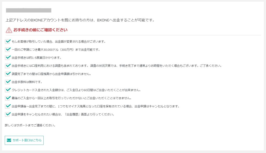 出金内容を確認して、メール内に記載されているURLをクリックすれば、BXONEによる出金申請は完了です。
