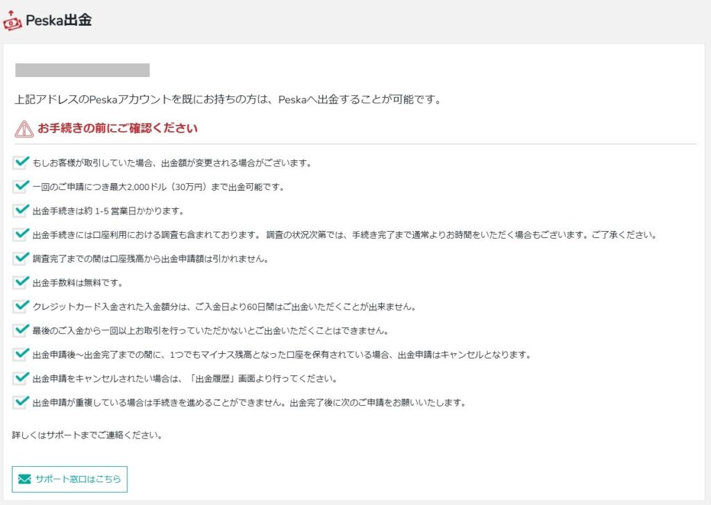 出金内容を確認して、メール内に記載されているURLをクリックすれば、Peskaによる出金申請は完了です。