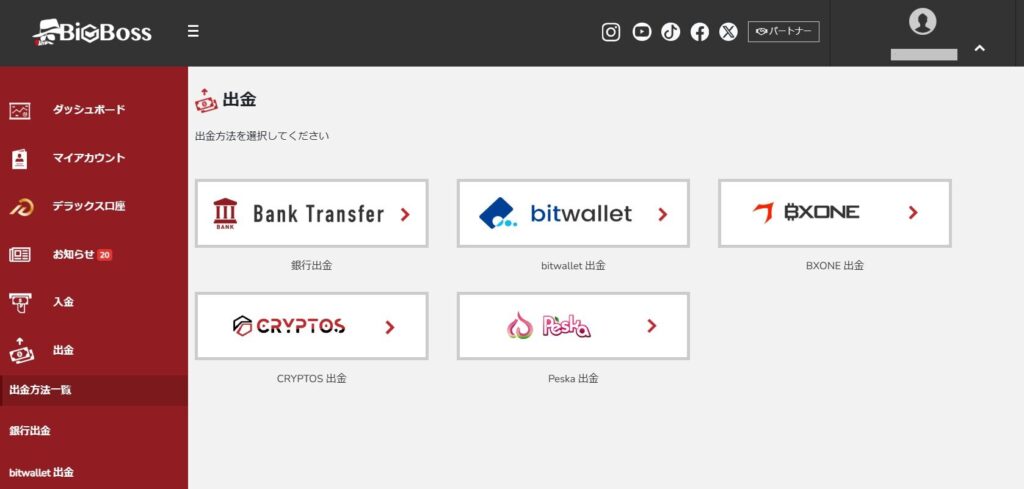 BigBoss(ビッグボス)の出金方法の詳細が以下になります。